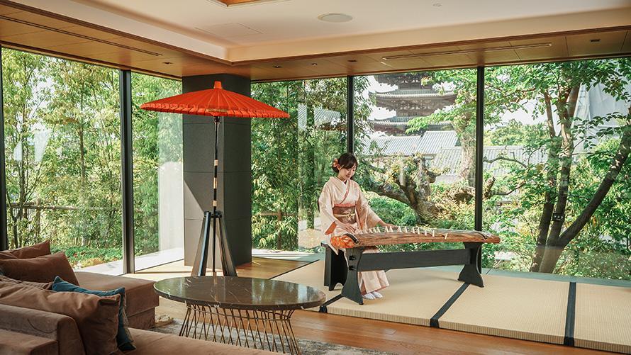 古都・京都のシンボルである法観寺・八坂の塔を借景とした特別な空間で、生演奏をお楽しみください。