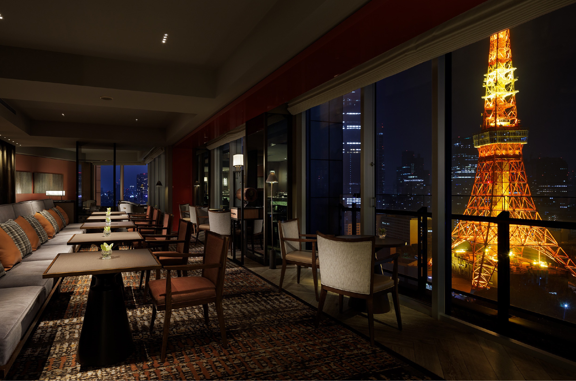 東京タワーを間近に臨むプレミアムクラブラウンジでは、時間ごとに異なるフードプレゼンテーション&ドリンクを楽しめます。