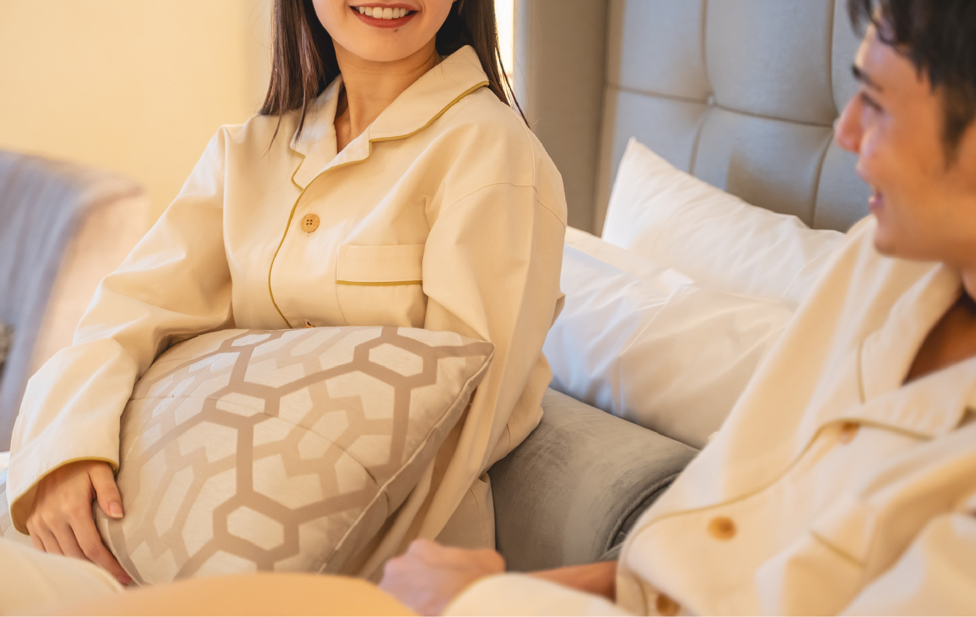 -木糸パジャマ付き- 2024.9.30(Mon.)まで 環境にやさしい、サステナブルステイ 間伐材を活用して作られたホテルオリジナルの木糸パジャマ。