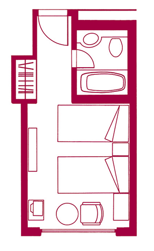 バス、トイレ、洗面台がコンパクトにレイアウトされたツインルームC。カジュアルなスタイルでおくつろぎいただけます。