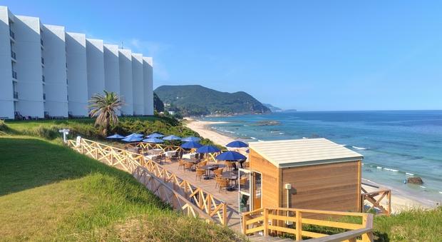 白浜海岸の名前の由来になった白い砂の正体は、約1千万~200万年前に噴火した海底火山から噴出された火山灰や軽石、当時海底にあった貝殻の破片などです。これらが堆積した地層が約100万年前、伊豆半島が本州に衝突して盛り上がった際に姿を現したといわれています。- アクセス:ホテルから徒歩約1分(白浜中央海水浴場)