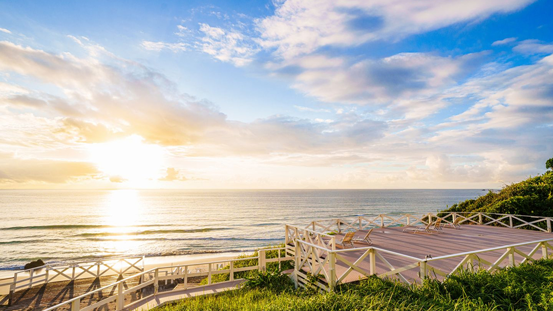 夜明け前、空の色がきれいなグラデーションになる瞬間があります。チャンスは1日1回限り。挽きたてのコーヒーを淹れて、お部屋のベランダでそのときを待ちましょう。ゆっくりと移りゆく景色を眺めながら飲む海辺のコーヒーは、優雅な気持ちになれる特別な一杯になるはず。