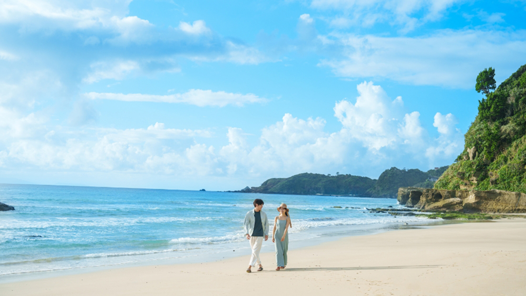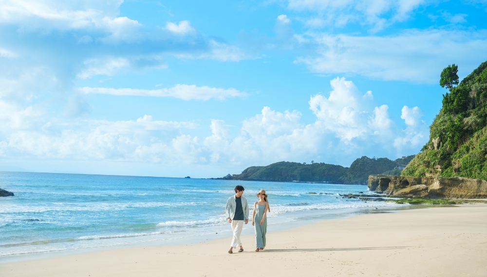 静寂の夜空にぽっかりと浮かぶ満月、洋上に映し出される月明りに道が幻想的な雰囲気を演出します。翌朝には朝陽と波音で目覚め1日が始まります。隣接する「白濱神社」で参拝することで月、太陽、神社のパワーをチャージするスピリチュアル体験を。