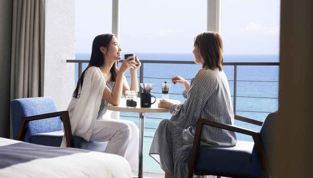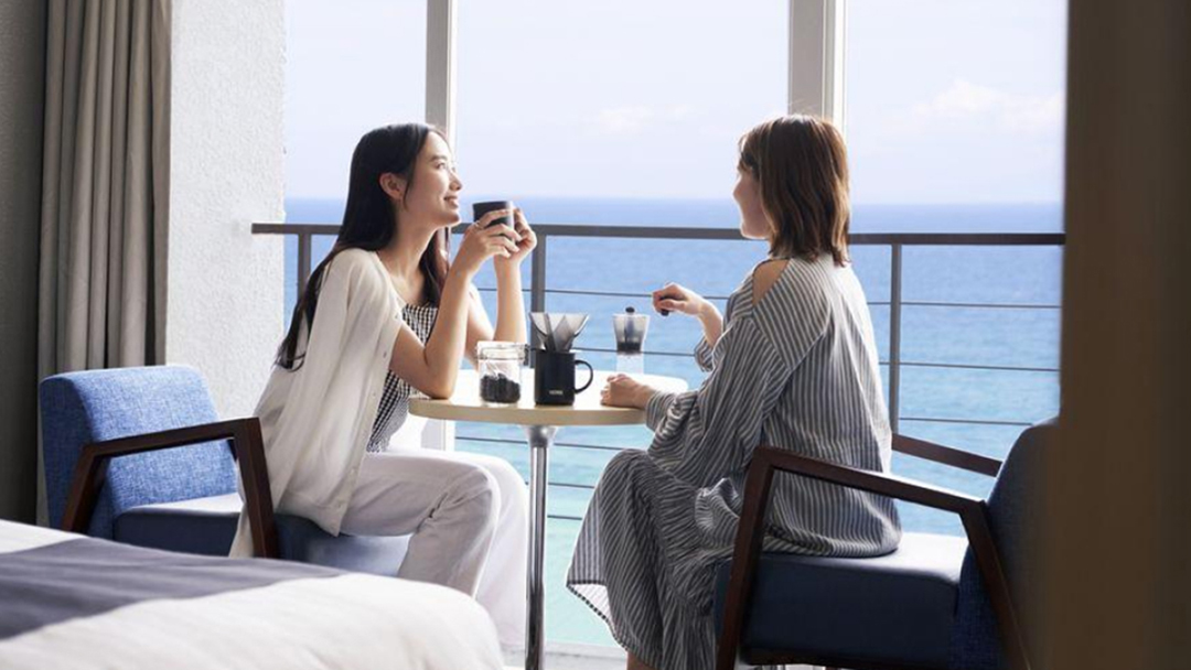 夜明け前、空の色がきれいなグラデーションになる瞬間があります。チャンスは1日1回限り。挽きたてのコーヒーを淹れて、お部屋のベランダでそのときを待ちましょう。ゆっくりと移りゆく景色を眺めながら飲む海辺のコーヒーは、優雅な気持ちになれる特別な一杯になるはず。