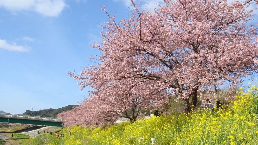南伊豆町・青野川沿いには、みなみの桜(河津さくら)800本の桜並木が続きます。