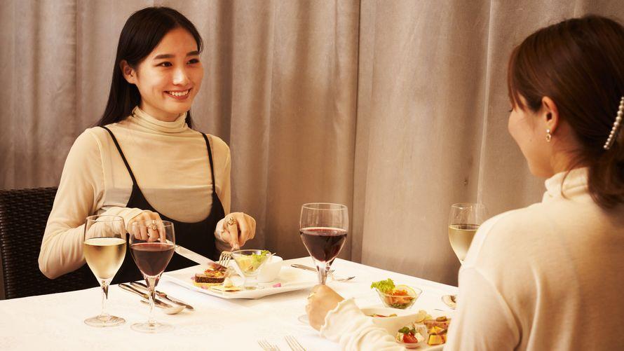 体験後は、シェフこだわりの和洋折衷コースを味わうディナータイム。
