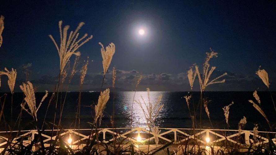 10月から11月の満月前後に、目の前に海が広がるテラスの特別席でのお月見体験。