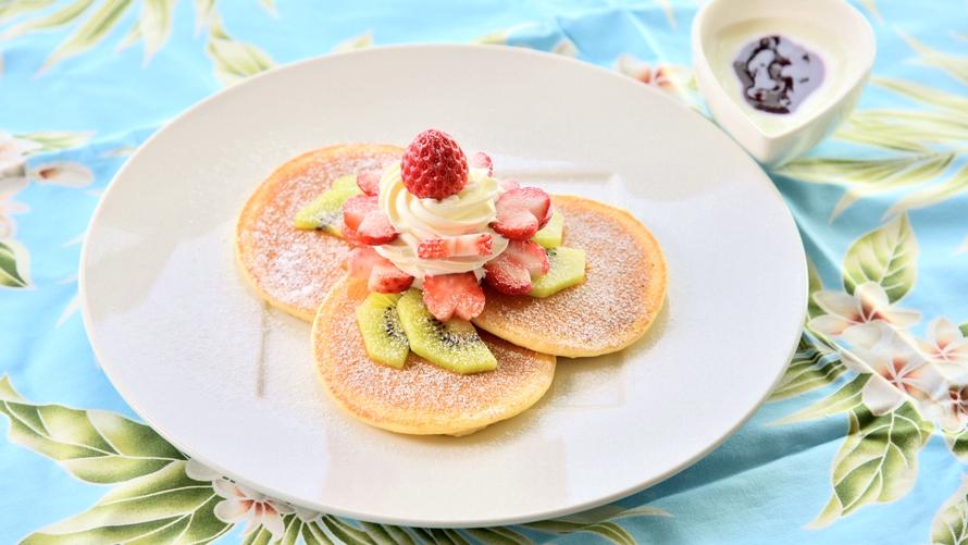ご夕食とともに、たっぷりのいちごに旬の彩りを添えたパンケーキををお楽しみください!