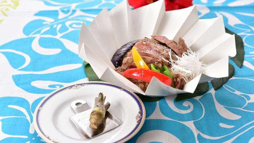 サーロインステーキ丼セット 天城産本わさび付(サラダ+フルーツ付) ¥3,500
