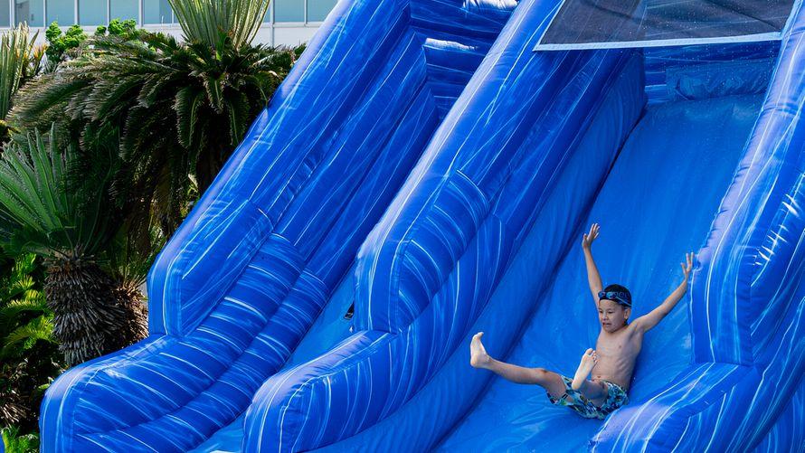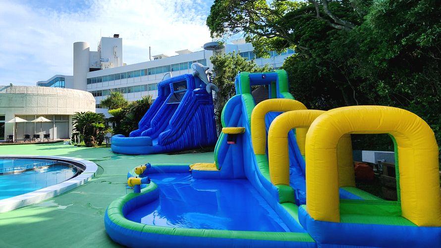※奥のドルフィンスライダーは12才のお子さままで、手前のスライダーは6才までと年齢制限を設けております。