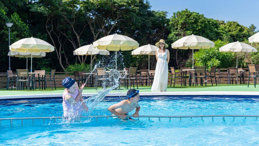 プールサイドにある「レストラン サンルーム」のデッキテラス席でティータイムがお楽しみいただけます。