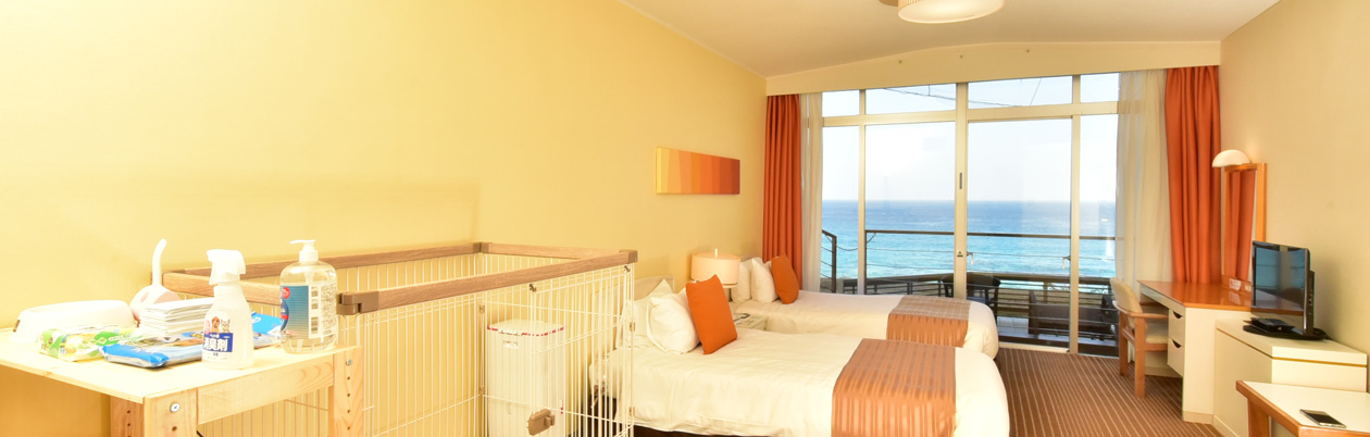 屋外テラス付き洋室9部屋を「愛犬同伴客室」としてご利用いただけます。