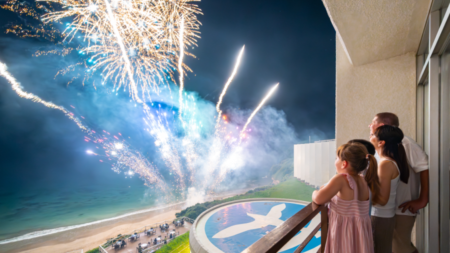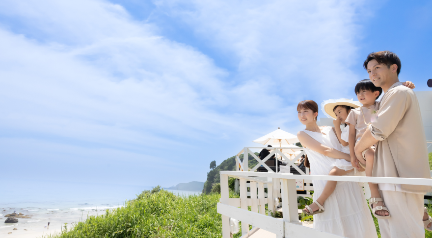 白浜海岸とエメラルドグリーンに輝く雄大な海を目の前にしたロケーションや水平線から昇る朝日など、ここでしか味わえない体験があります。期間:2025年7月19日 (土) ~ 2025年8月31日 (日)