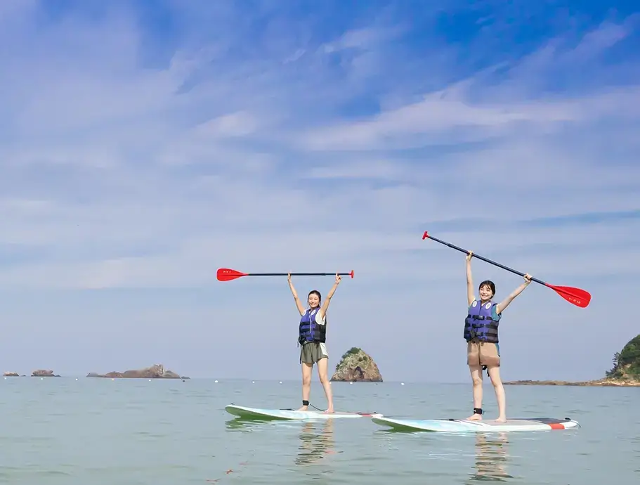 シーカヤックやシュノーケリングやSUPなどで海遊び!海水浴場百選に選ばれた透明度の高い「白浜中央海水浴場」はホテルから徒歩1分。プライベートビーチ感覚で楽しめます。
