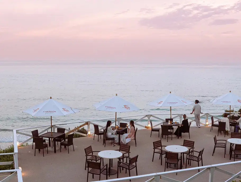 海を眺めながらのランチ、夕暮れ時の夕食前に楽しむアペリティフやスパークリングが楽しめる サンデッキ。波音のBGMや海風が運ぶ匂いを感じながら、夏のひとときをお過ごしください。