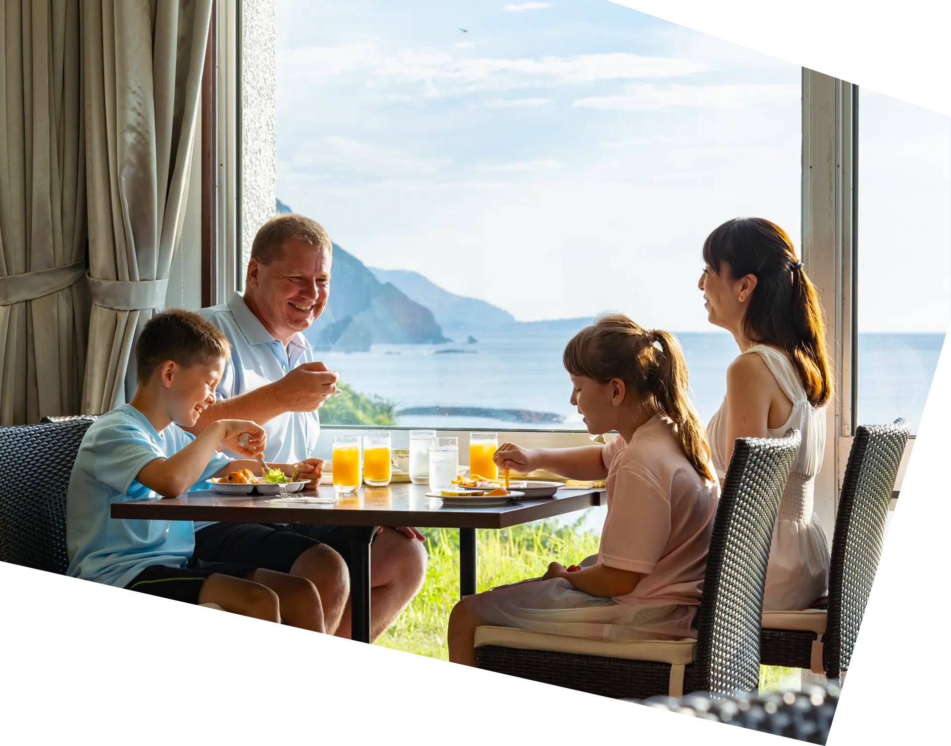 海を臨むレストランで、お好みの料理を心ゆくまでお召しあがりいただけるブッフェ。お子さまが喜ぶメニューが揃う「キッズコーナー」も登場し、ご家族のお食事がまた一段と楽しくなります。