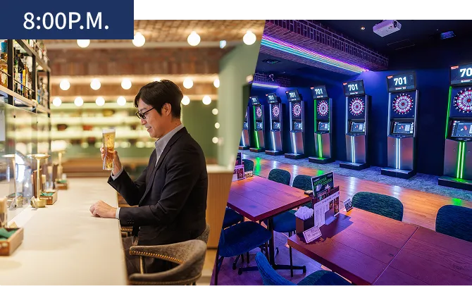 B1のアミューズメントフロアにあるダーツでリフレッシュも。