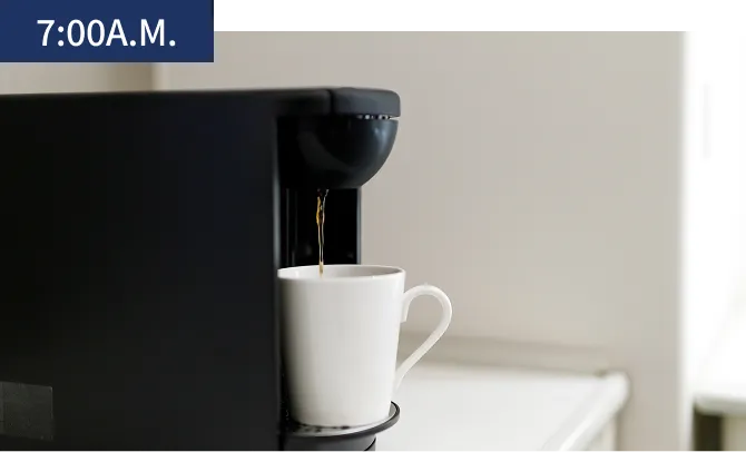 淹れたての一杯を客室にあるコーヒーマシンで、目覚めの