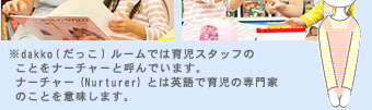 | ※お預かり(託児)のスタート時間が、6:05P.M.以降になる場合、利用料の他に『時間外特別料金』が別途かかります。詳細はだっこルームへお問合せください。 |
