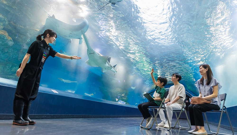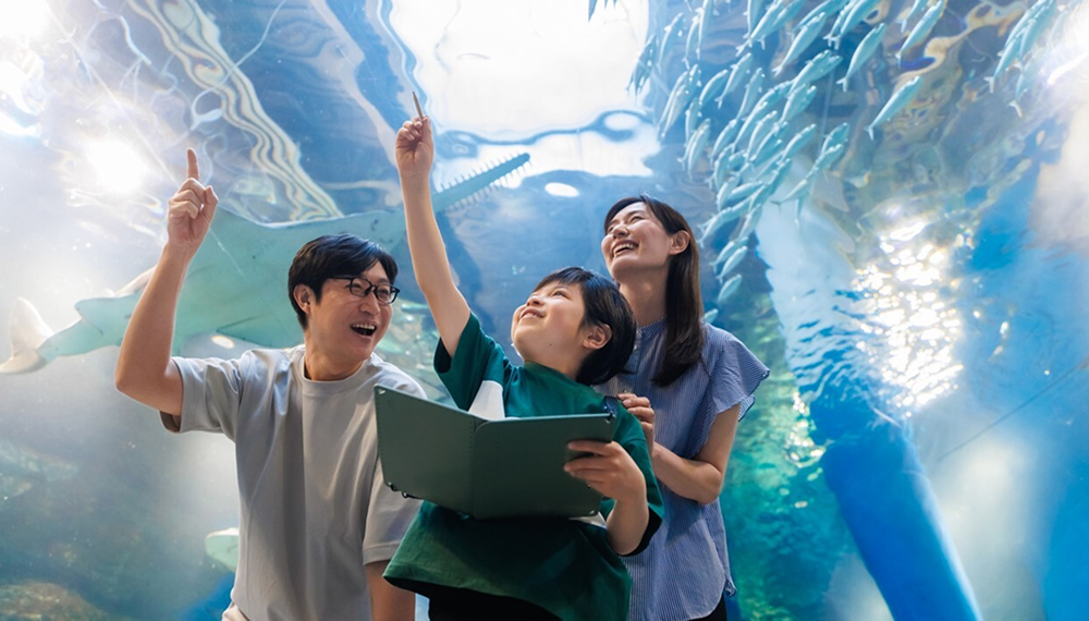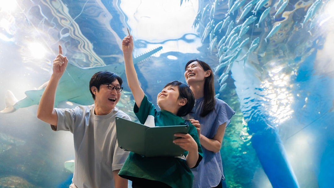 貸し切り水族館へご案内。イルカがよろこぶスペシャルアイスを作りませんか?飼育員さんが考えたクイズに答えながら海の環境問題について学べます。夜と朝の水族館を親子で探検しよう。