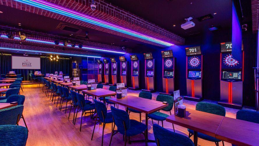 全16台のダーツ台を設置したダーツフロアと、高音響・高機能で楽しめるカラオケルームを8部屋ご用意。