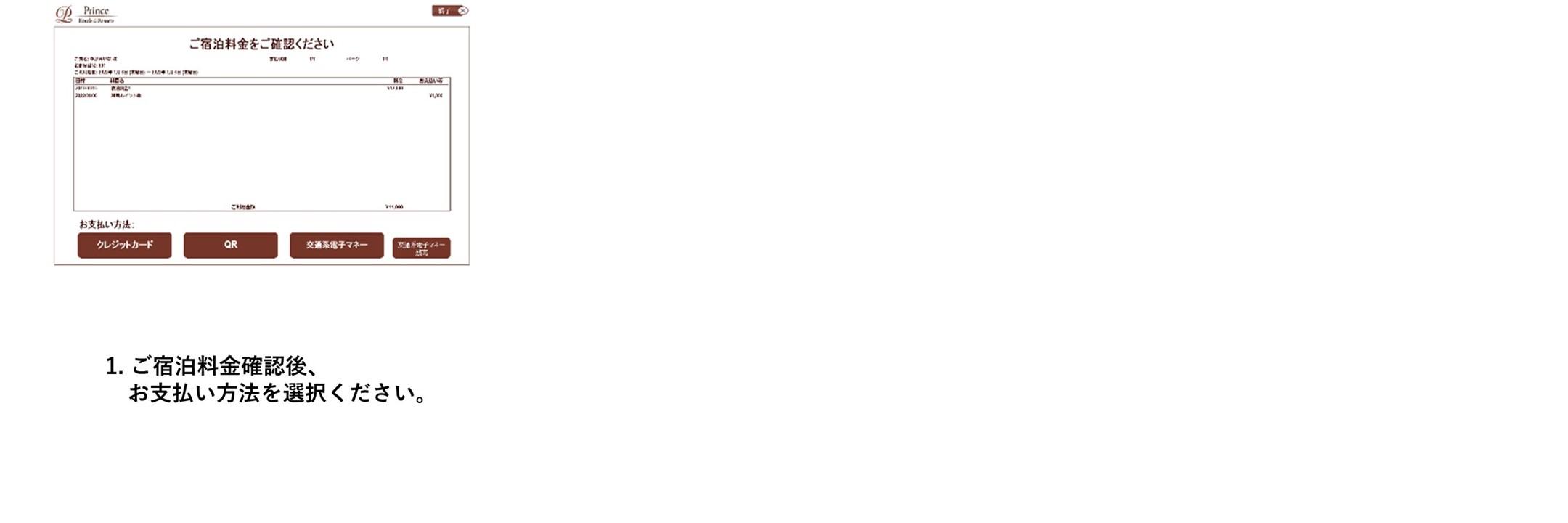 宿泊料金お支払い完了後、レシートとルームキーが発行されチェックインのお手続きが完了いたします。