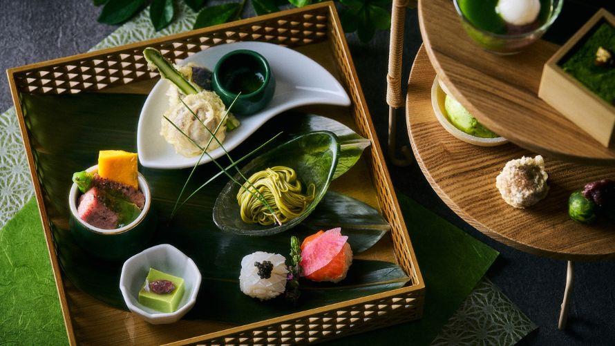 香り高い抹茶を主役に、和の素材を取り入れたセイボリーとデザートをそろえた「和の抹茶アフタヌーンティー」。
