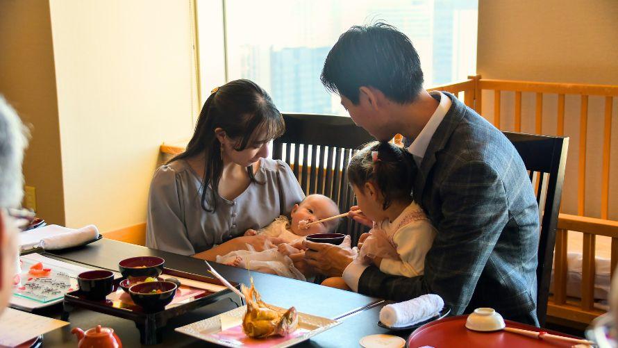 オプションで豪華な祝い盛りや記念撮影も追加できるのはホテルならでは。お子さまのメニューが選べるのも魅力の一つ。