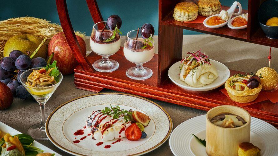 季節の果実や食材を主役に彩り豊かに仕立てた、秋の実りを味わうチャイニーズアフタヌーンティー。