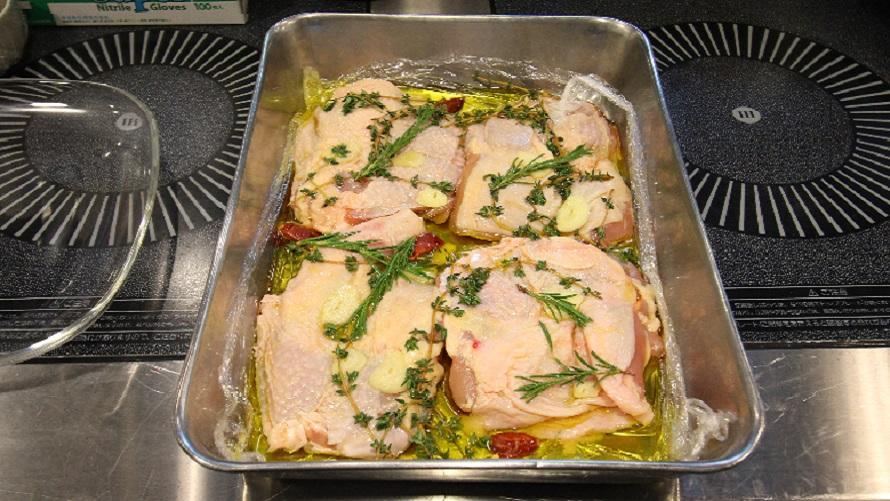 ローズマリー、タイム、オリーブオイルを入れて、