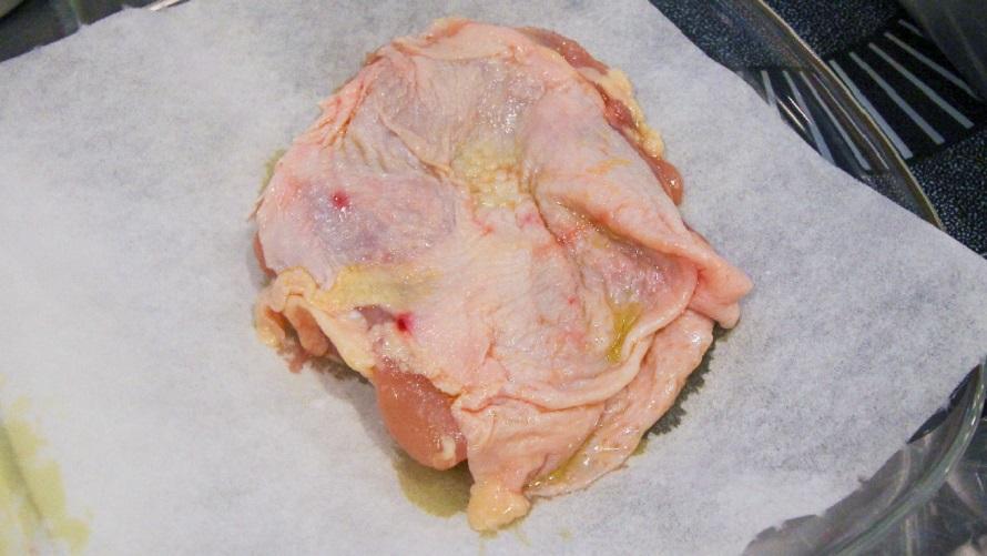 タッパーからマリネしたチキンを取り出し、