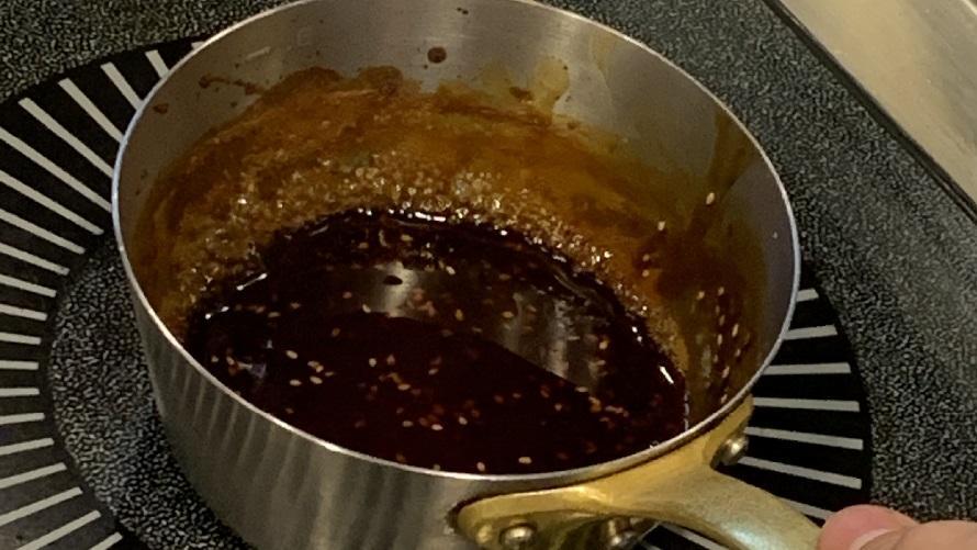 ポリネシアンソースの材料を鍋に入れて沸かした後、