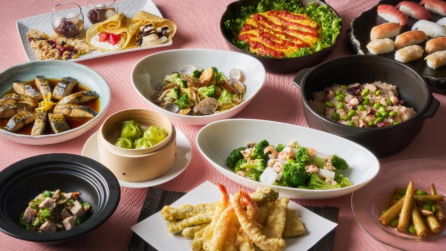 ◆食事内容:サラダバー/肉料理/天婦羅/パスタ/握り寿司/デザート/ソフトドリンクバー 他