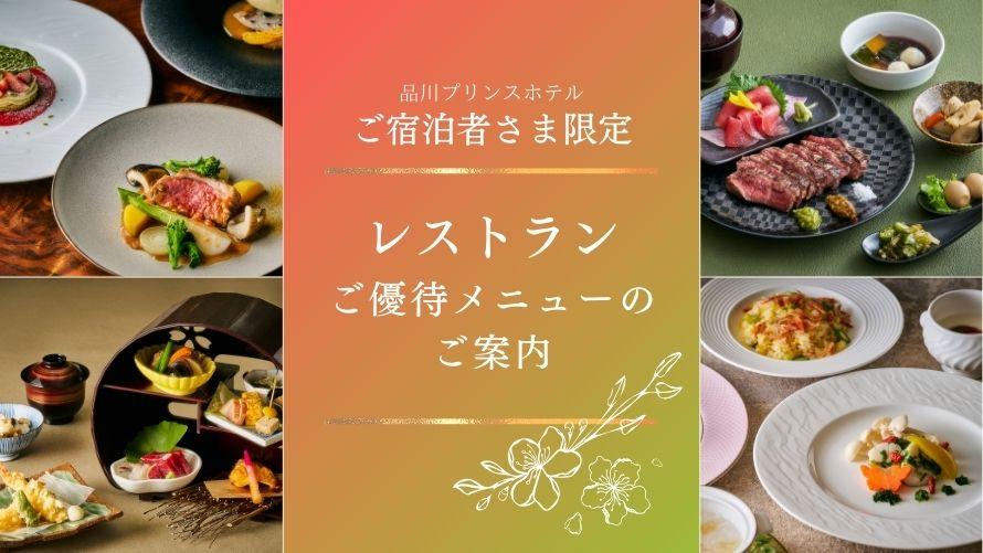 品川プリンスホテル各レストラン&バーでは、ご宿泊の方限定でお得にご利用いただける優待メニューをご用意しております。