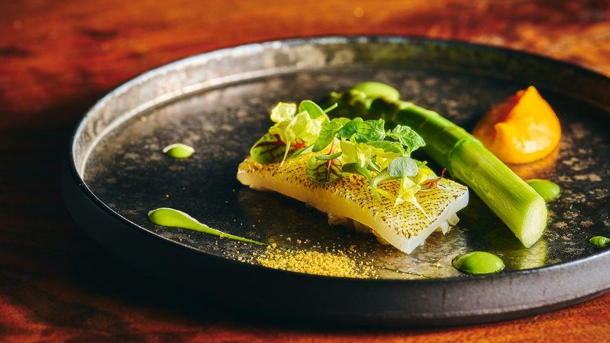 ・チョリソーをまとった真鯛のロティ 泡雪のヴァンブランソースと共に