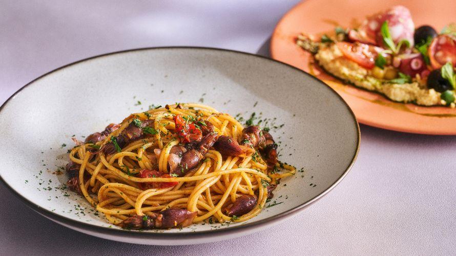 ・ひよこ豆のクレームと蛸のマリネ 白胡麻とレモンの風味