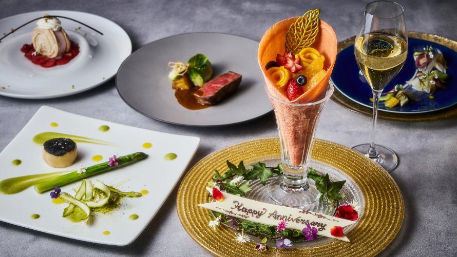 スペシャリティディナーにグラスシャンパンとアニバーサリーパフェがついた特別プラン。