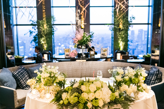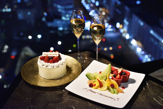 最上階のレストランで特別な日のお祝いに。メッセージプレート付きのブーケパフェやケーキなどをご用意しております。