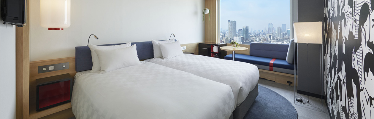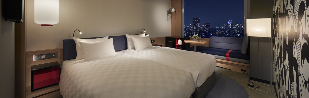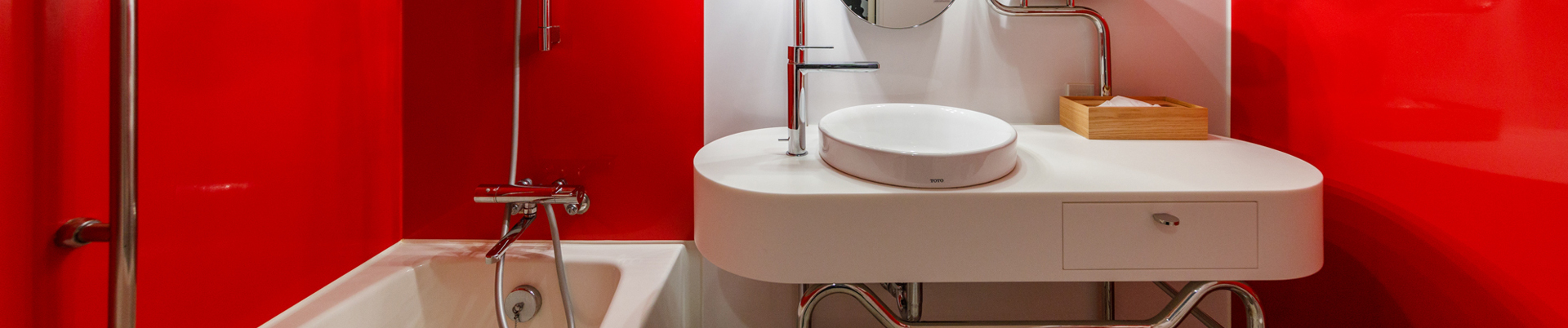 ReFa製品がお試しいただけるお部屋で、ビビッドカラーに彩られたバスルームは、ご滞在をより印象深いものに。