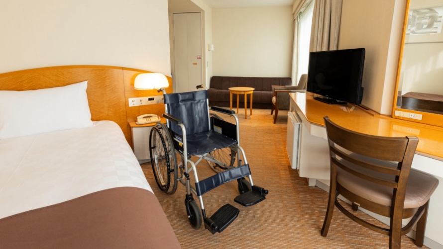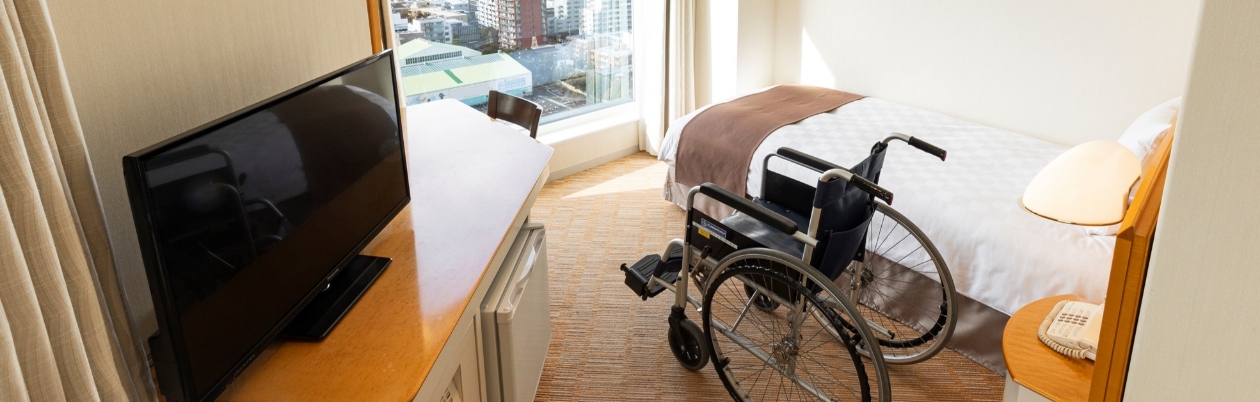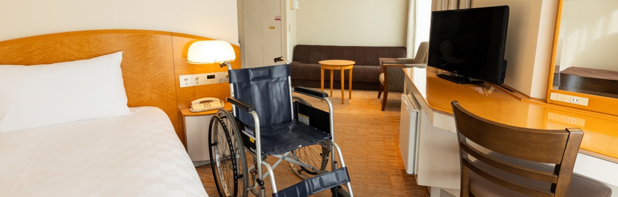 車椅子のままでも快適にお過ごしいただけるよう工夫を凝らした機能的なお部屋です。