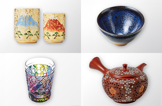陶磁器の中でも最高品質の一つとされる京焼・清水焼を中心に、常滑焼の急須や燕の鎚器、人気の江戸切子・薩摩切子。
