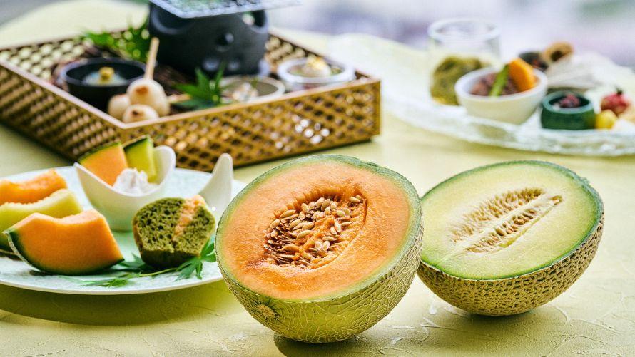 メロンシャーベットの涼やかな口溶け、メロン杏仁豆腐のやさしい調和、そしてメロンパンのふんわりとした甘さといった多彩な姿で、その魅力をさりげなく表現しています。