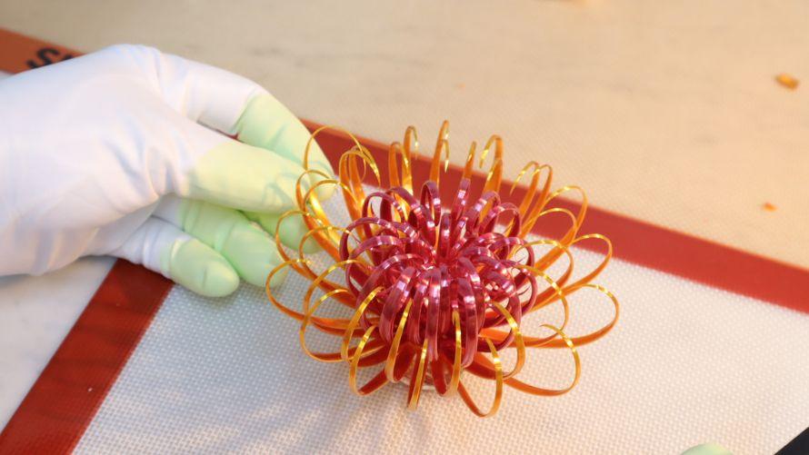 型へ流し込んで作った土台の上に、大輪のパーツを一本一本配置していきます。