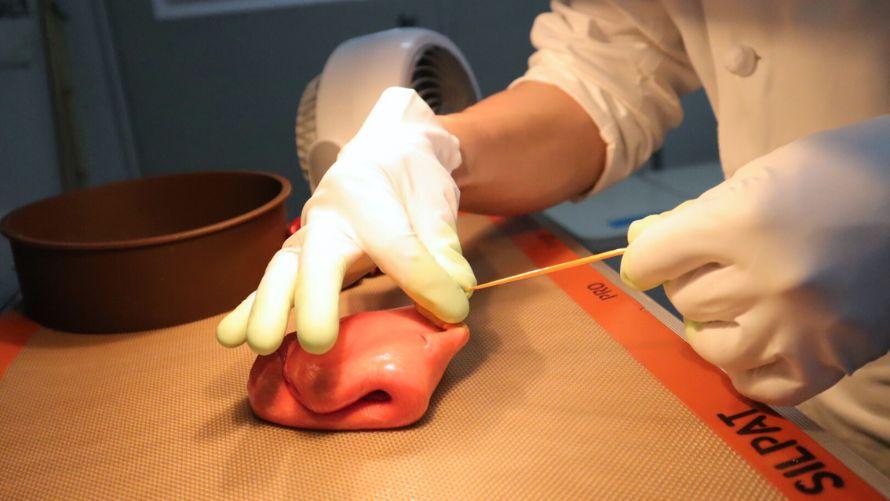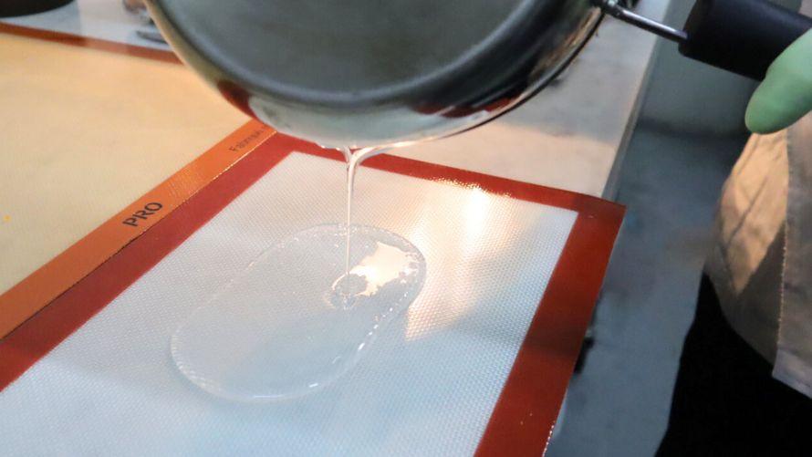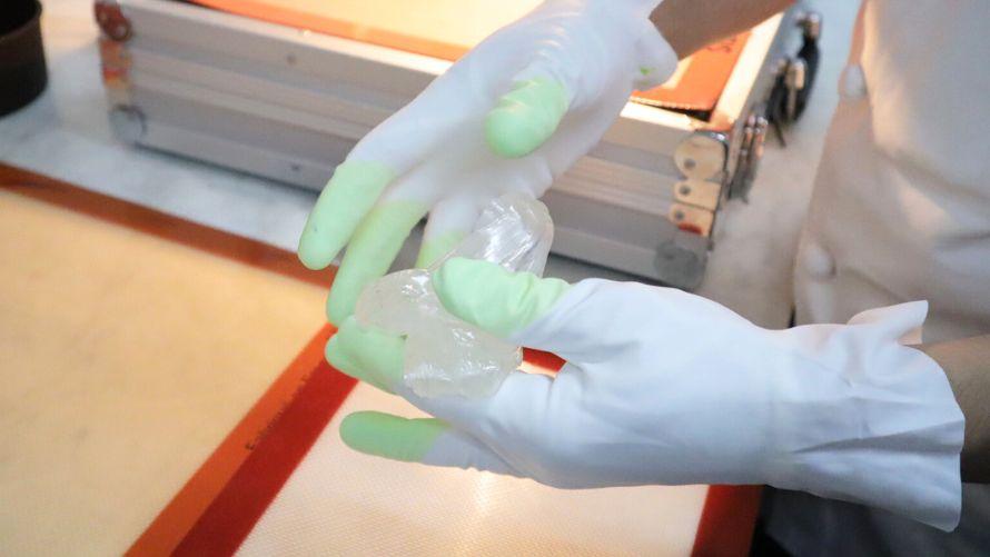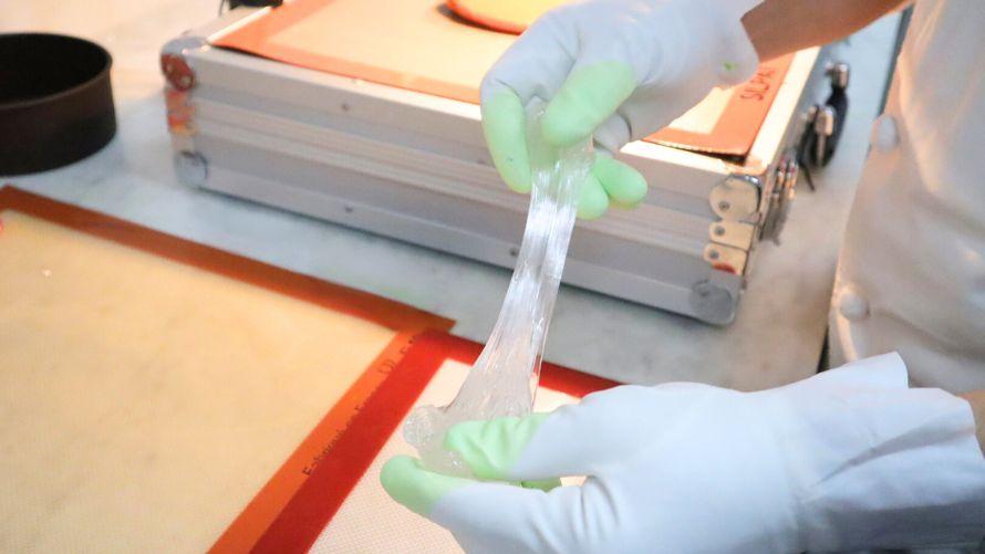この飴細工の制作現場へ潜入取材させていただきました。パティシエ森岡による制作工程の一部を特別にご紹介いたします。