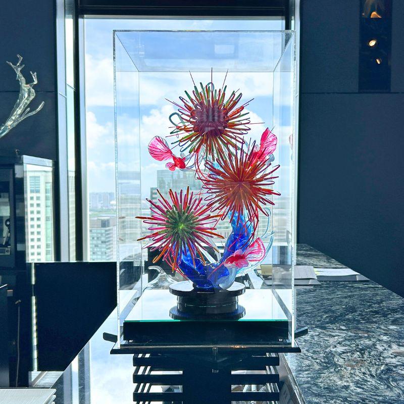 レストランにお越しの際は、その場で写真に収めていただき、写真越しの美しさと、目の前に展示された実物の上品な輝きやエレガントな佇まいを見比べて、お楽しみいただけます。