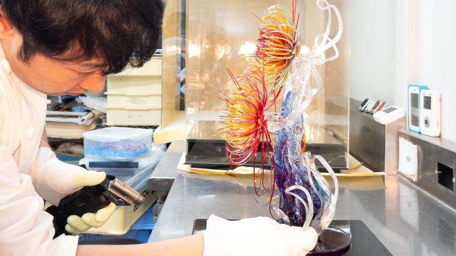 飴に繊細な細工を施した後は、造形の最終段階へ。