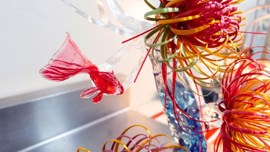 「DINING & BAR TABLE 9 TOKYO」にて2025年7月1日(火)〜9月15日(月・祝)販売中のアフタヌーンティースイーツコース “天空の夏まつり~Summer Sweets Nostalgia~”に合わせて、パティシエ森岡邦泰が制作した飴細工が期間限定で店内に展示。