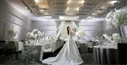 【スタイリッシュ】は、グレーとホワイトを基調とした洗練された雰囲気の会場