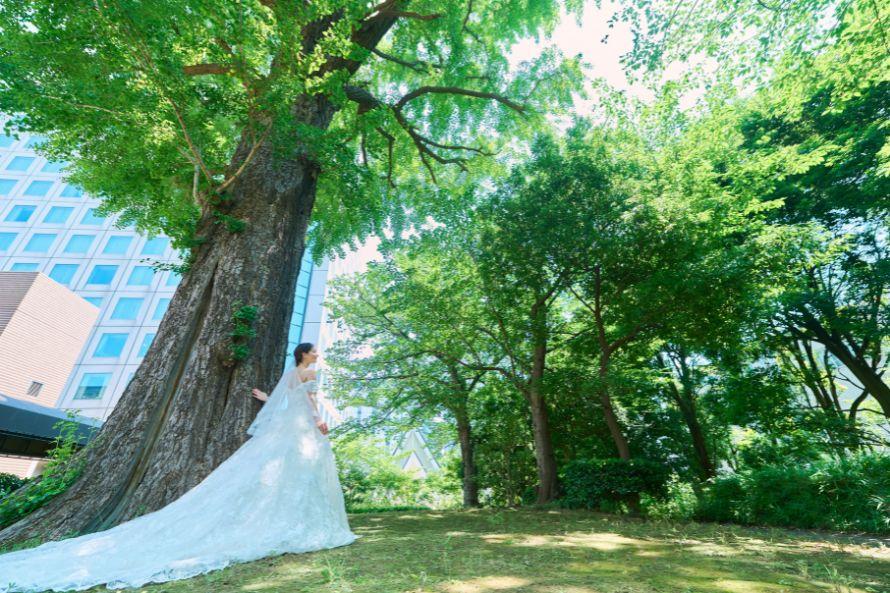 品川プリンスホテルのシンボルロード「いちょう坂」での、前撮り撮影が可能です。
