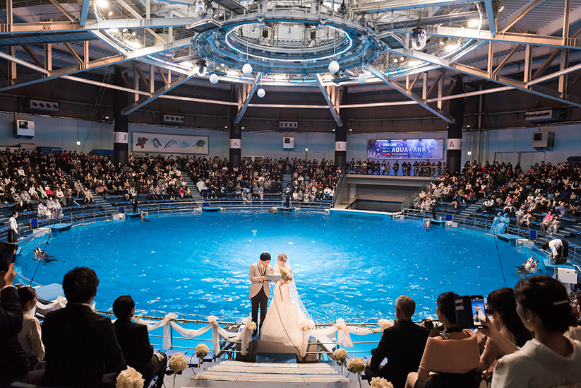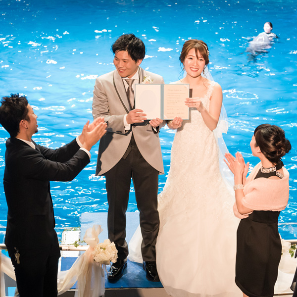 ゲストだけでなく、水族館へ訪れた一般の来館者からも祝福されて忘れられない思い出になるはず。
